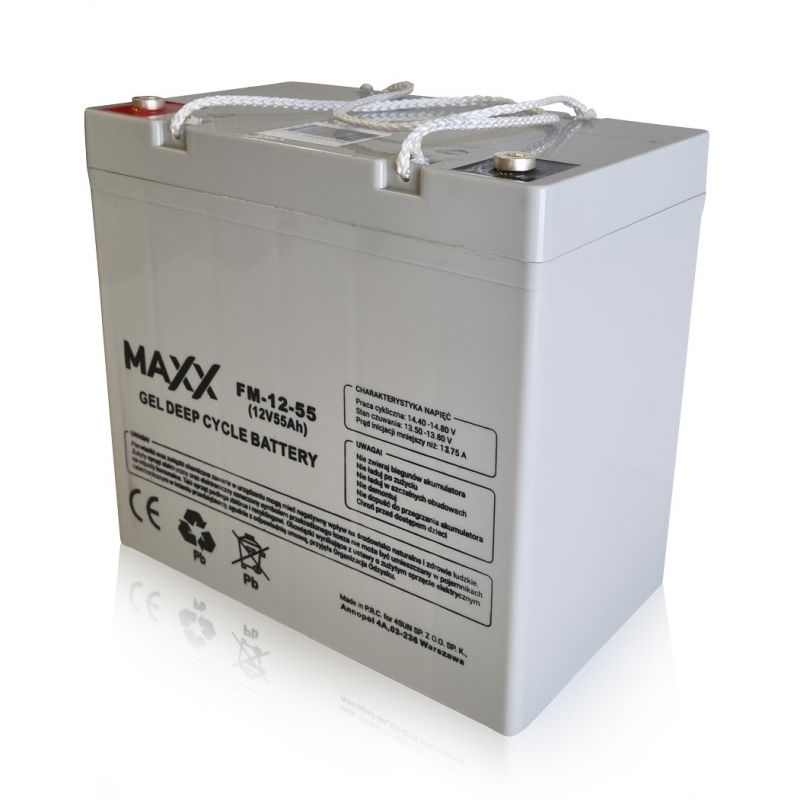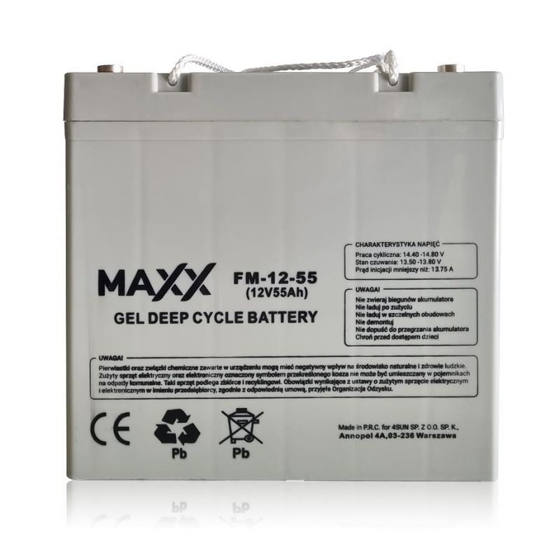 | Opis ogólny | Akumulator żelowy 55Ah to w pełni bezobsługowy akumulator, którego elektrolit ma postać żelu. Zastąpienie cieczy żelem wpływa na brak korozji oraz większą wytrzymałość na ekstremalne temperatury, uderzenia oraz wibracje. Pozwala na osiągnięcie stanu pełnego naładowania nawet po jego głębokim rozładowaniu. Akumulator żelowy 55Ah jest przystosowany do cyklicznego rozładowywania i ładowania, dzięki czemu idealnie sprawdza się w systemach solarnych. |
