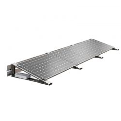 Konstrukcja gruntowa K502 w wersji z czarnymi klamrami pionowymi K500 to wytrzymały i łatwy w montażu system stelaży do instalacji fotowoltaicznych, umożliwiający montaż 16 paneli PV w pionie.
