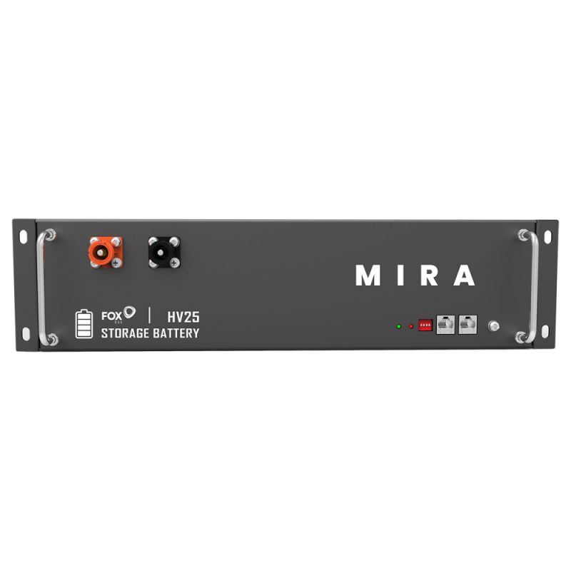 | Opis ogólny | Mira HV25 to wysokowydajny, skalowalny moduł akumulatorowy. Modułowa konstrukcja zapewnia maksymalną elastyczność użytkowania, dzięki czemu rozwiązanie jest odpowiednie do szerokiego zakresu zastosowań w zakresie magazynowania energii. Dodatkowe akumulatory mogą być instalowane szeregowo, co pozwala na maksymalne zmagazynowanie 19,66kWh. Instalacja jest prosta dzięki rozwiązaniu typu „plug and play”, pozwalając zaoszczędzić czas.Żywotność baterii FoxESS HV2500 wynosi powyżej 6000 cykli, co jest wynikiem świetnym, jak na tego typu urządzenia. Akumulator posiada typowe rozmiary do zabudowy w szafach typu Rack. Zakres temperatury, w której może z powodzeniem spełniać swoją funkcję wynosi od -10 do +50°C. Bateria FoxESS HV2500 współpracuje zarówno z sieciami 1-fazowymi i 3-fazowymi. Komunikacja odbywa się natomiast za pomocą złącza CAN/RS485. | ||||||||||||||||||||||