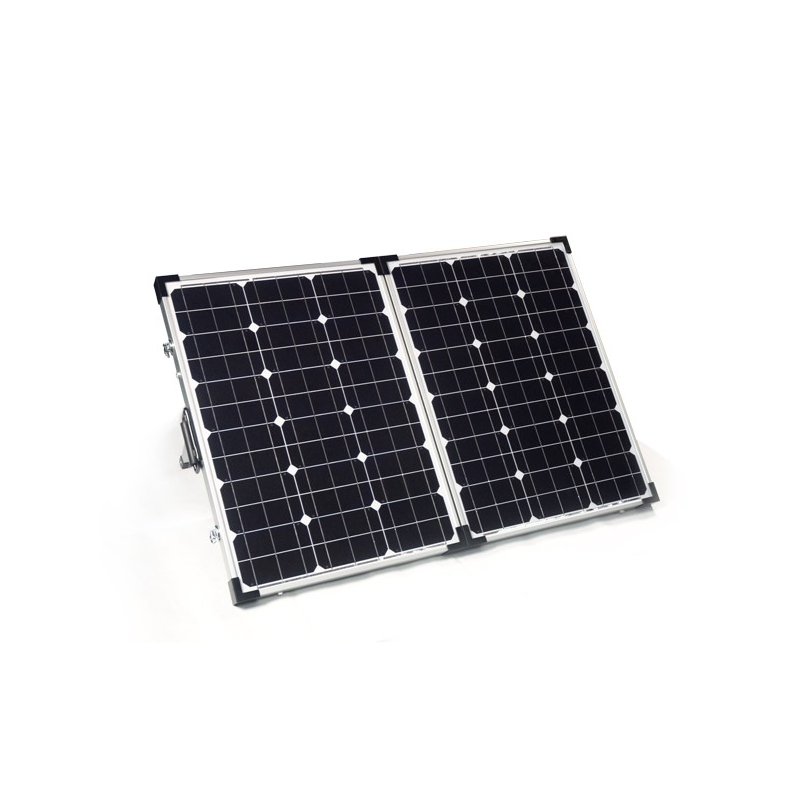 SKŁADANA TURYSTYCZNA BATERIA SŁONECZNA 2X50W to bateria zbudowana z dwóch wysoce wydajnych modułów monokrystalicznych. Cechuje się niezawodnością i możliwością pracy w różnych warunkach atmosferycznych. Jest to rozkładany panel słoneczny posiadający wbudowany regulator ładowania dla akumulatorów 18-33 Ah. Sprawdza się wszędzie tam, gdzie nie ma stałego dostępu do zasilania.
