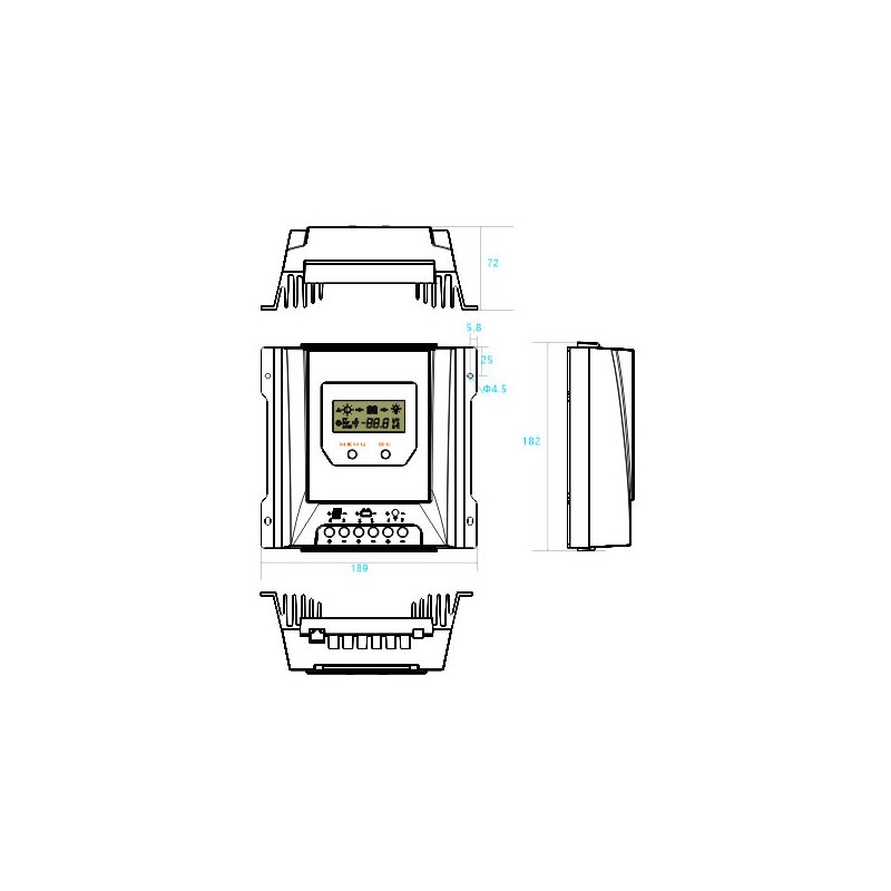 | Dane techniczne produktu | | Model | MT2010BT | | Napięcie systemu [V] | 12V/24V | | Maks. prąd ładowania [A] | 20A | | Napięcie ładowania MPPT [V] | <14.5/29.0V (przy 25°C) | | Napięcie Boost [V] | 14.5/29.0V (przy 25°C) | | Napięcie Equalization [V] | 14.8/29.6 (przy 25°C) (płynny) | | Napięcie Float [V] | 13.7/27.45 (przy 25°C) | | Odłączenie odbiorników przy niskim napięciu [V] | 10.8~11.8V/21.6~23.6V SOC1~5 | | Napięcie ponownego podłączenia [V] | 11.6~12.8V/23.2~25.6V | | Zabezpieczenie przed przeładowaniem [V] | 15.5/31.0V | | Maks. napięcie złącza akumulatora [V] | 35V | | Kompresja temperaturowa [V/K] | -4.17mV/K na ogniwo (Boost, Equalization) -3.33mV/K na ogniwo (Float) | | Typ akumulatora | Płynny, Żelowy, AGM, Litowo-jonowy | | Komunikacja | BLE 4.2, RS485(interfejs RJ11), IoT | | Maks. napięcie złącza PV [V] | 100V | | Maks. moc wejściowa [W] | 260/520W | | Napięcie wykrywania zmierzchu/świtu [V] | 8.0/16.0V | | Zakres śledzenia MPPT | ~Voc0.9 | | Prąd wyjściowy [A] | 20A | | Interfejs USB | - | | Tryb pracy | Standard, D2D, Oświetlenie uliczne (2 -9h) | | Maks. sprawność śledzenia[%] | >99.9% | | Maks. konwersja ładowania [%] | 98% | | Wymiar [mm] | 189x182x64 | | Waga [kg] | 1 | | Własne zużycie mocy [mA] | 7mA | | Temperatura otoczenia [°C] | -20 ~ +50°C | | Temperatura przechowywania [°C] | -25 ~ +80°C | | Wilgotność otoczenia [HR] | 0 ~ 100%RH | | Stopień ochrony | IP32 |
