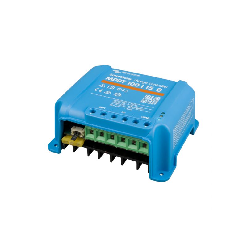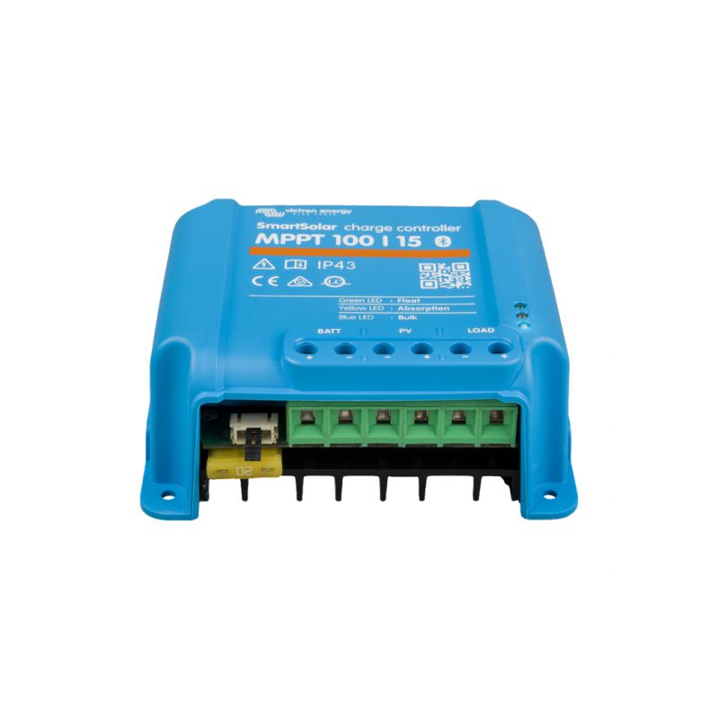 Regulator ładowania SmartSolar MPPT 100/15 z wbudowanym modułem bluetooth oraz z punktem śledzenia maksymalnej mocy z modułów PV.